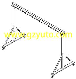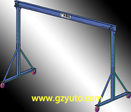 固定高度龍門吊的凈高固定, 而可調高度龍門吊的立柱可伸縮, 每節(jié)0.15米, 共6節(jié), 調節(jié)范圍最大0.9米。 龍門架起重機通過4個腳輪移動, 萬向腳輪帶剎車。