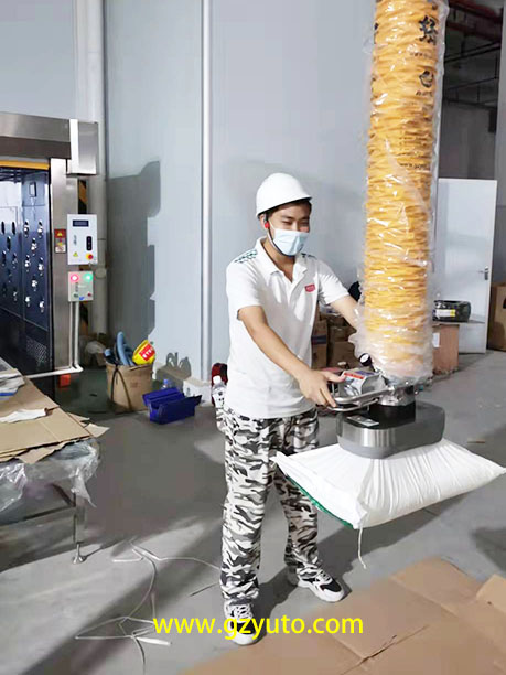 廣州粵拓提供了全部由304材質(zhì)制成的、符合食品衛(wèi)生標(biāo)準(zhǔn)的、能夠以最快速度搬運(yùn)50KG蔗糖編織袋的真空吸吊機(jī)。 我們已經(jīng)為眾多食品行業(yè)的著名公司提供過(guò)類似設(shè)備, 包括位于香港元朗的雀巢牛奶、 吉百利、明治雪糕和華僑糖廠等等。